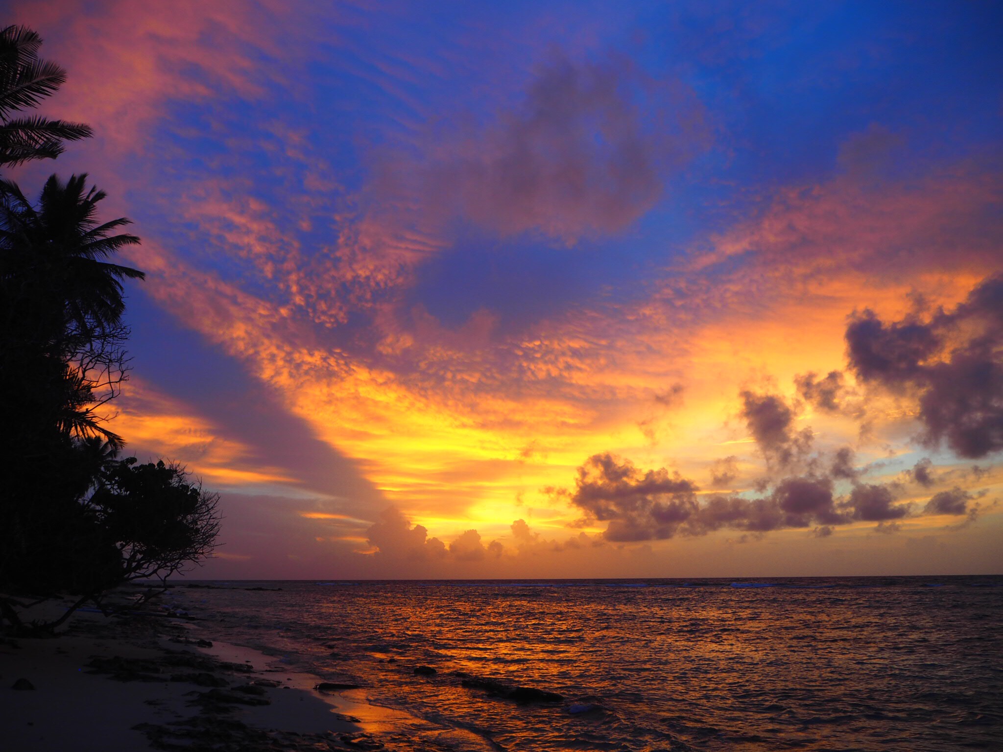 The island-operated Friday night ferry from Malé to Thulusdhoo was cancelled the night we were supposed to take it, due to a forecast calling for rain and wind (which never happened). We were stuck in Malé and eager to get to somewhere more relaxed, preferably with a nice beach. We ended up shelling out $200 for a 45 minute speed boat ride just to get out of Malé, but about 10 minutes after departure the engine broke down. They called for another boat to come pick us up. It turned out to be a dhoni rather than a speed boat, but for the same price. The trip took considerably longer than by speed boat, but we had some dolphins swimming next to us for a bit. We eventually made it and we were just glad to be somewhere else. With the sun setting, we checked into our guest house and immediately went for a swim.