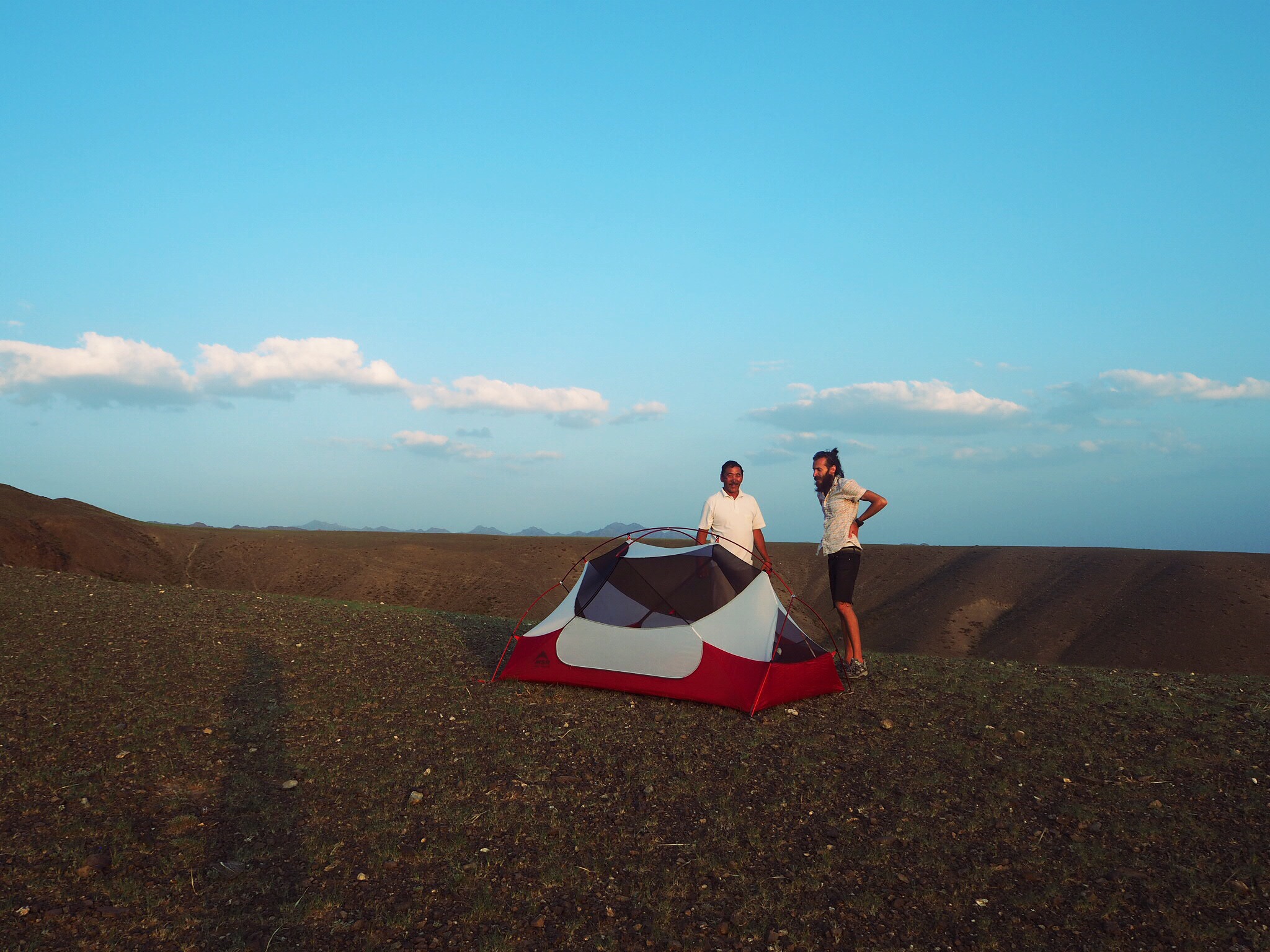After some hand motions and questions we discovered that Bagii and his family would be sleeping in the car, and we took turns using the camping stove to prepare our meals. The night was extremely still, but the cloudy skies intimidated us into putting the rainfly up, adding to the warmth in the tent. Confusing lights in the distance seemed to symbolize our baffling experience that day. A distant campfire in an unlikely direction. Headlights of cars that looked startling close but lacked the familiar growl of an engine. The buzzing of distant motorcycles and bobbing of what could have been flashlights across the valley.