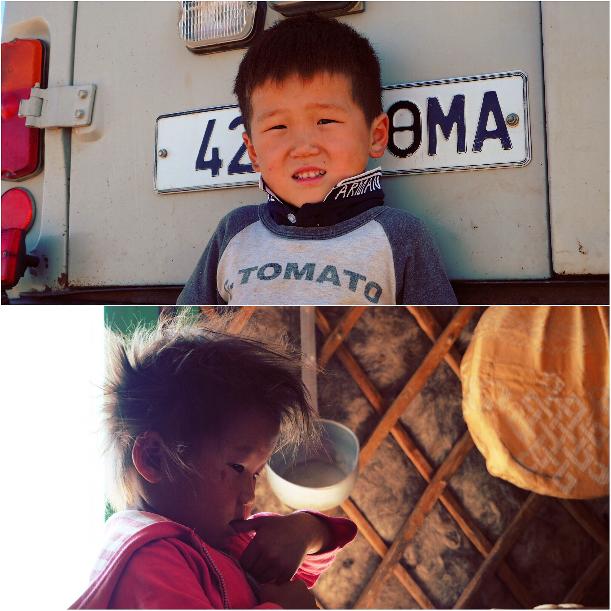 After learning the nature of her well-intentioned but ultimately offensive gesture, and at least getting to the bottom of what was going on, and also having a square meal (which turned out to be not only edible but quite good) we were gaining somewhat of a repertoire with our ad hoc travel partners. We set up camp up one of the canyons, and were told that when the horses were wrangled up (they’re not fully domesticated, and so they run wild for most of the time until they’re needed) they’d be brought up the canyon for us. This didn’t end up happening, so we went down in the valley with Bagii and his son to investigate. Apparently they were having a hard time finding the horses, so we hung out around the yurts for a bit instead. They had some goats inside a pen, so we headed over there to hang out with the goats for a bit. There was an adorable baby goat which was butting its head against our legs and licking our fingers. It was then about time for the goat milking, so we climbed into the pen with the locals and helped pull all the goats together onto a rope for the women to go down the line milking each one. We even had a shot at milking them ourselves, but this proved to be fairly difficult work, and we immediately respected the task a bit more. There was a girl of only five years old running around wrangling goats like a pro; she would fearlessly grab them by the leg or the horn or whatever part was most accessible and drag them kicking and screaming over to her grandfather to tie them up for the milking. This girl immediately took a liking to Oona, during dull moments she’d run up to Oona and hold her hand or hug her leg or initiate a tickle war. The power of human bonding prevailed yet again in that this little girl, so far removed from the society we’re used to, sharing no common language, magnetized to Oona for comfort.