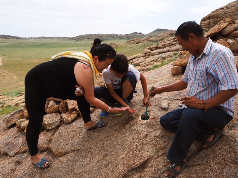 We were fairly certain that we’d be heading back to UB today. We concluded that the day we cut short at Khongoryn Els was removed from the itinerary altogether and that this was our last day in the countryside. How could these random people put up with so much just for a free ride back to UB? We were aware that we were being taken advantage of, but we weren’t really sure what to do about it. After a few visits to various other attractions (including a small hole in a rock filled with water that was ostensibly good for the eyes) in another valley, we came back from one attraction to find Bagii’s wife rifling through our food and apparently using it to cook. We were pretty irate, but again didn’t know what to do or make of it. Another tour group with a guide who spoke English came along and did a bit of translating between us and Bagii. She said we’d be heading to another yurt for the night to ride some horses and be merry and all that stuff or whatever. We were totally fed up with everything that had gone on over the past few days and suggested that we head back to UB instead; it would be easier on everybody to simply cancel the thing and head back to the city. The problem was, as the guide explained, that Bagii had signed a contract with the guest house (the tour operator, in this case) that stipulated that he and we be in the countryside for seven days, or else Bagii would not be paid in full. The fact that he was concerned about getting his money out of the transaction after picking up his family for a ride on our dime was equally infuriating, but our argument wasn’t getting very far, so we conceded with another night of camping (no more yurts, please) and some possible horseback riding.