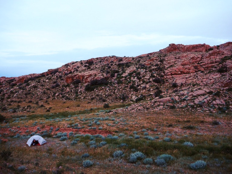 We forgot that proximity to water, while making for a nice camp site, also harbored the only mosquitos around. We managed to rinse the sand off and get into the tent with only a few dozen bites. The few minutes after that were spent killing the handful of mosquitos that made it into the tent with us, a few blood stains on the tent tell the tale of this battle. One of the few annual rain storms happened tonight as well. We spent the evening looking out at the lightning crashing down on the dunes in the distance, and counting the seconds to the thunderclap (it turns out it was really far away). The rain pattering on the tent was our lullaby.