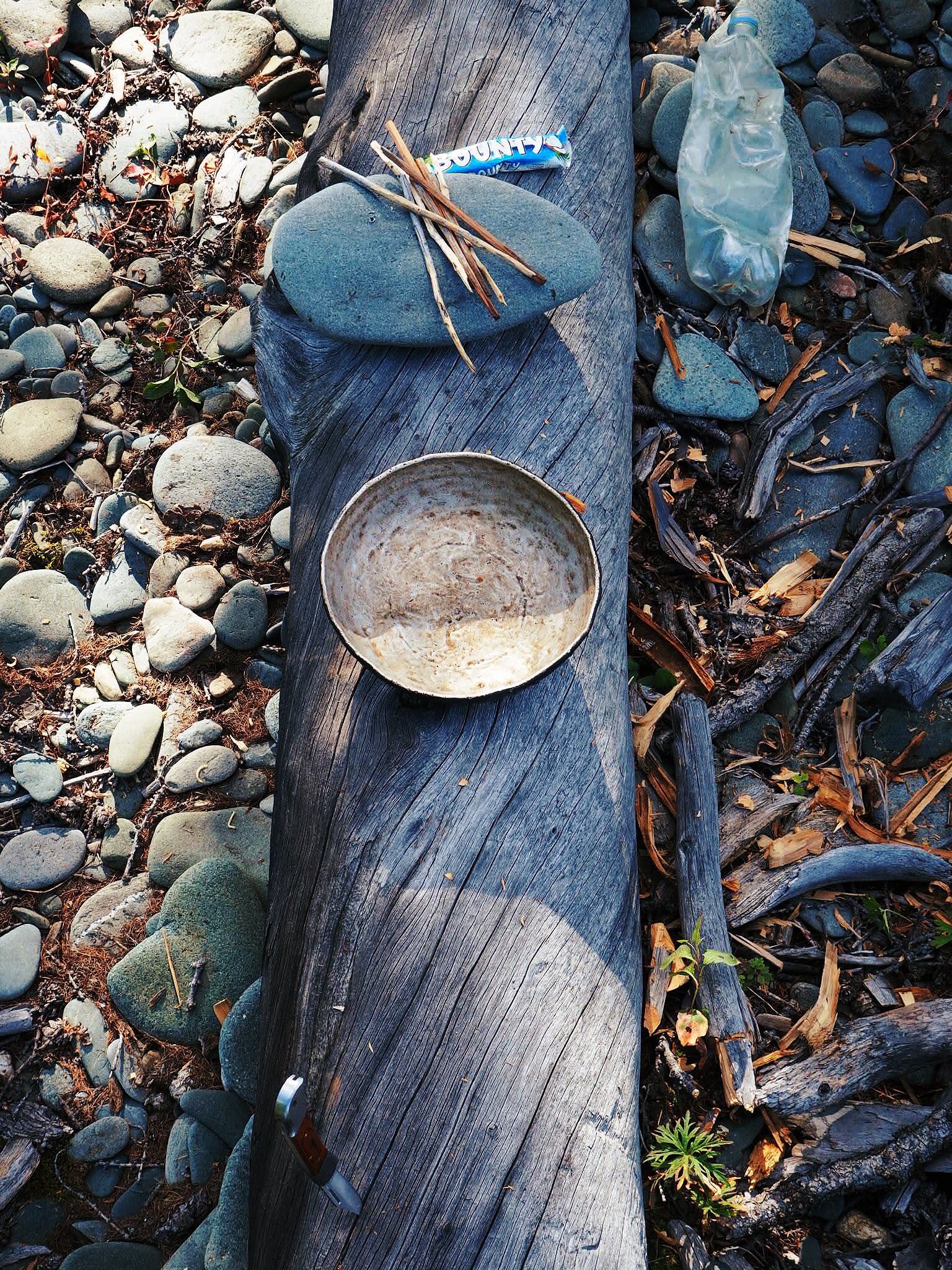 We settled on a beautiful and secluded camping spot on the lakeshore after about 20km of riding and started to set up camp. At this point, it was clear that the guest house had forgotten to supply us with cooking gear as they had said they would, so between the three of us there was one shallow and fire-worn pot, one spoon, and one bowl, all of which belonged to Shavaa. We laughed about our misfortune a bit and set out to figure out a way around it. Shavaa, like most Mongolians, is an absolute wizard when it comes to living off the land, and he whipped us up some surprisingly straight and sturdy chopsticks from some driftwood we found. We ended up sharing most meals on the basis that we had only one pot, and Shavaa was prepared to the degree you’d expect from a Mongol. They somehow survive off the bare minimum of sustenance for weeks at a time; for six days, Shavaa had with him a small loaf of bread, two tubes of liver paste, a bag of tea cookies, and a small bag of mutton very much nearing its expiration date. He surely would have survived, but we still felt bad, so we shared our food as thanks for using his pot.
