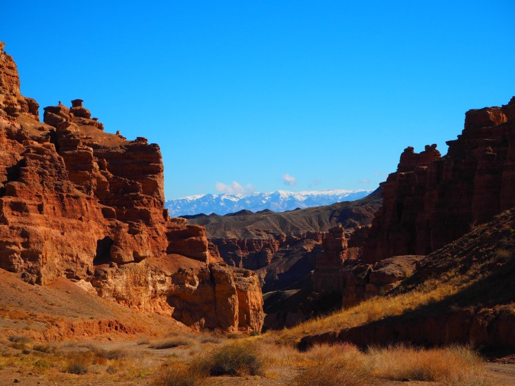 We left in two RAV4s (one driven by the original driver, and the other by his brother and boy genius nephew) early the following morning accompanied by bright blue skies and sub zero temperatures. After several hours of driving we made it to the Charyn Canyon and hiked down to the river and back. Just as we showed up a British family came peeling into the parking lot, beat us down the steps, and proceeded to dilly dally down the path, making it difficult to engineer pictures without them. We eventually waited long enough that they were out of sight and got some good ones.