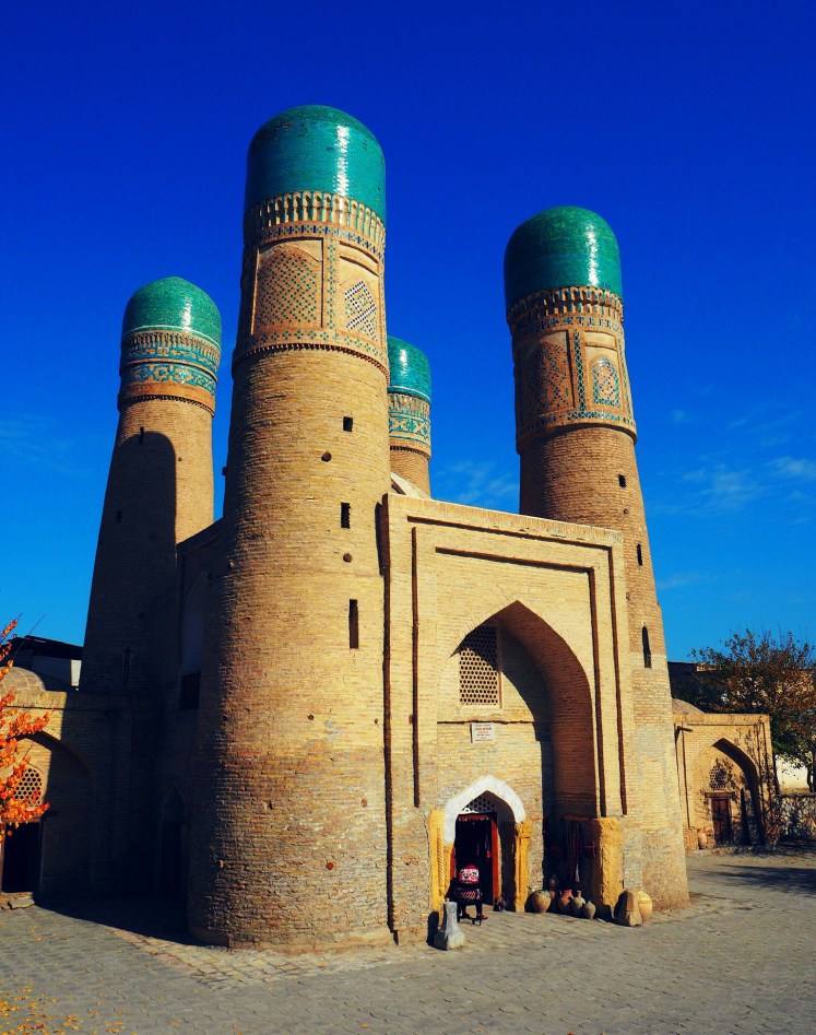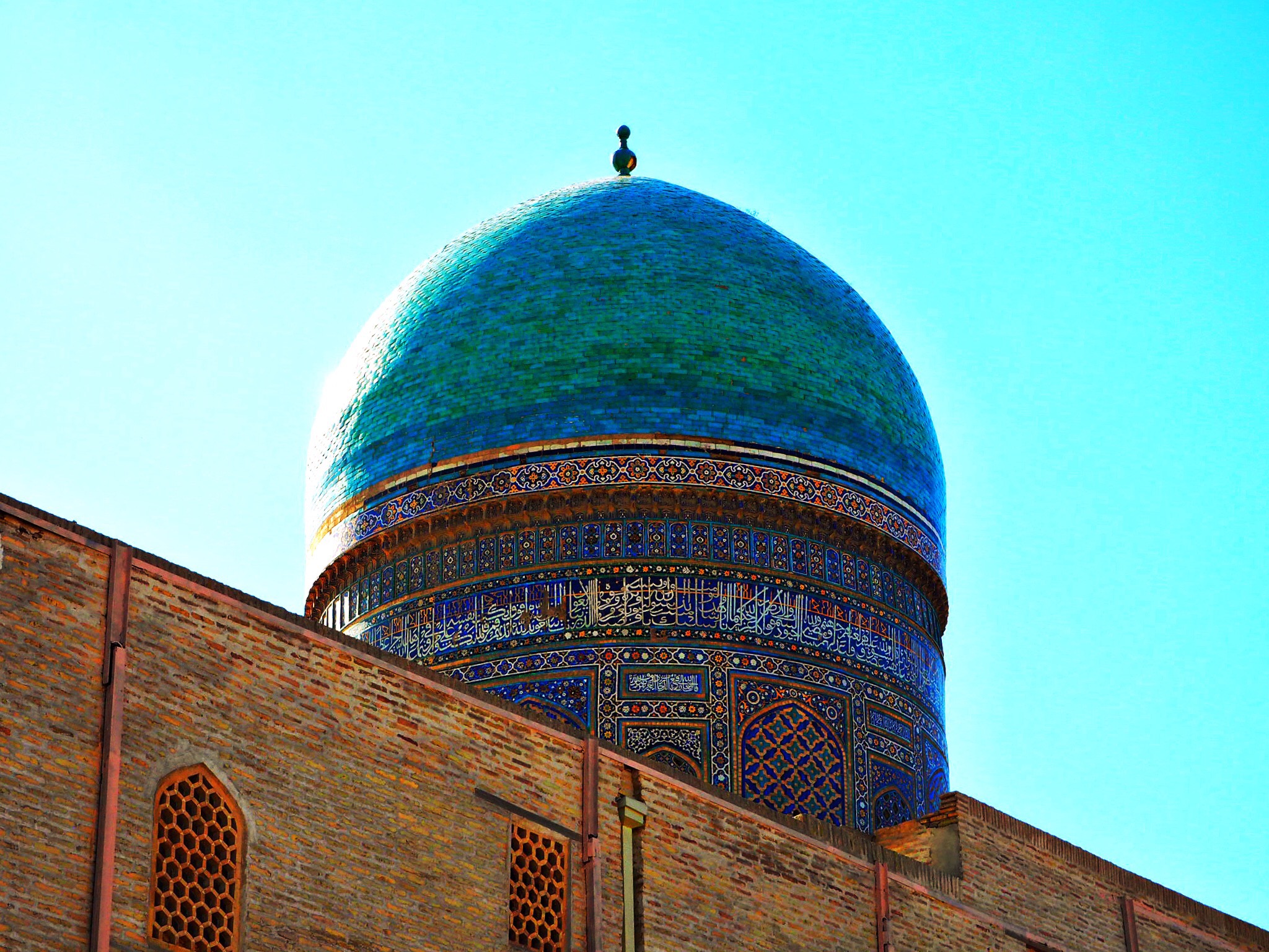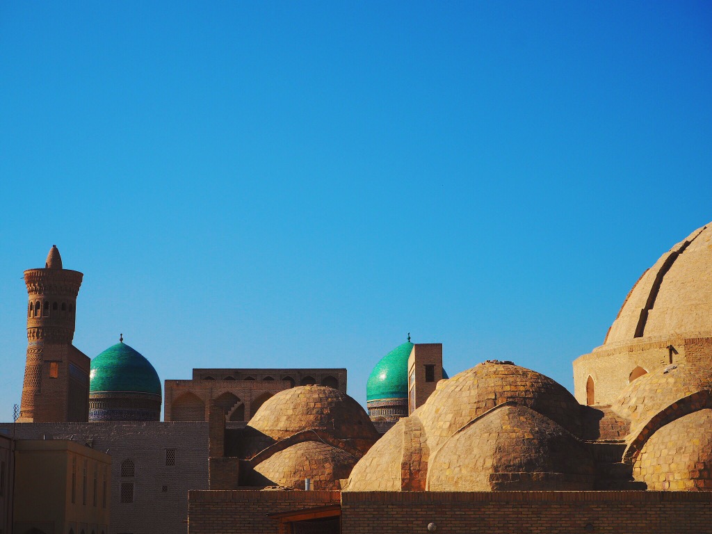 After crossing the border a handful of taxi drivers approached us about a ride to Samarkand or Bukhara. We agreed on a ride to Bukhara, our first destination in Uzbekistan. After we set out, it became apparent that the family sharing the taxi with us and the driver were heading to Samarkand, so the driver tried to convince us to come there instead. We insisted on getting all the way to Bukhara, whether or not we’d need to go via Samarkand (at least a 9 hour drive via Samarkand). It wasn’t clear which path we were taking until later. Fortunately, given our early start, we made it to Qarshi just after sundown. There, our driver arranged another driver for us (at no cost, since we already paid for our whole ride), since our car was heading east to Samarkand. We finally rolled into Bukhara at around 9pm and were ushered into yet another car (again at no cost) to make it all the way to our guest house.