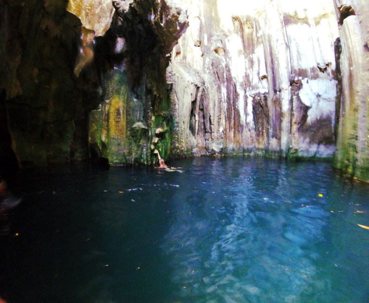We visited the Sawa-I-Lau caves, just north of Tavewa, which was a definite highlight. It’s the same location that a large portion of the 1980 film Blue Lagoon was filmed at. The cave is filled with a mix of salt and fresh water, and it’s entered through a stairway leading into the depths. The first cave has a mostly open top, so it’s fairly well lit, but the bottom is many meters below. The second cave, however, is the real attraction. Only accessible via a shallow dive under a few meters of water, underneath a submerged rock arch, the second cave is nearly pitch black, with only a hint of blue light shining in through the underwater passage. Fresh air makes its way down through a very long, very narrow and curving passage to the sky above. We navigated through the caves with snorkels and fins, with our guide deftly diving to explore the depths below with a flashlight.