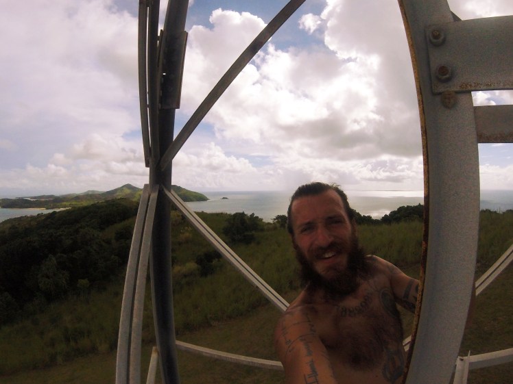 There is a cell tower at the top of the island, and the area near the top affords generous views of the surrounding islands, and on the leeward side, out across the ocean towards Vanuatu. The hike up to the top is easy, but with a fair amount of elevation gain and bush whacking.