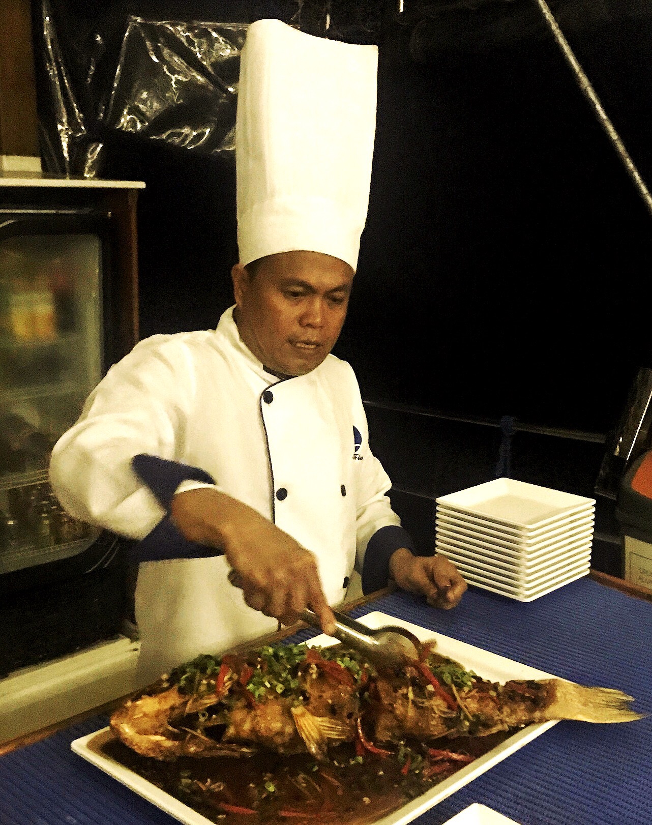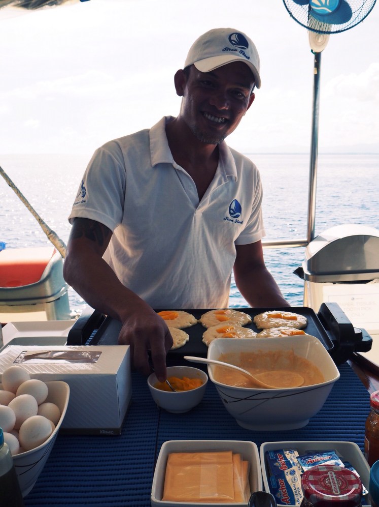 The crew was mostly fantastic, always serving up great meals to keep us well-fed and energized for our typical four dive days. Special shout outs go to Carmel, the boat’s hostess, who was always waiting with juice or water (or beer, if it was the last dive of the day) in hand before and after our dives; and to Boy, the boat’s bombastic chef, always dashing out of the galley with a bell to introduce the dishes. The more reserved Maureen and Joanry, the boat’s housekeeper and sous chef, respectively, drew much respect as well for their hard work and friendly attitudes. The more unsung heroes of the crew like Russell, the captain, and Marvin, one of the dinghy drivers, as well as many more, all worked very hard to make sure our experience was great.