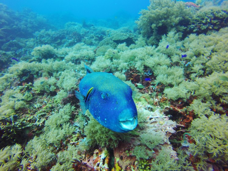 On the not-so-great side, Oona was viciously attacked by a territorial triggerfish. Just as her no deco time was nearing 0, she began a brief ascent to a slightly shallower depth. This apparently didn’t sit well with a nearby triggerfish which sped towards her from her blind side and lashed out with a series of jabs and stabs and attempts to take a bite out of her. Donato, the dive master, let out a shouted warning just as the triggerfish began to close in, but it was muffled to the point of unintelligibility through his regulator. The warning sounded a bit more dire than perhaps the situation was, so in a bit of a panic Oona turned to confront the attacking triggerfish. The onslaught was surprisingly sustained, however, and the triggerfish kept attacking over and over again. Eventually, after they had gotten out of its domain it receded to its lair. Shaken, but fortunately not injured, the crew returned to the surface.