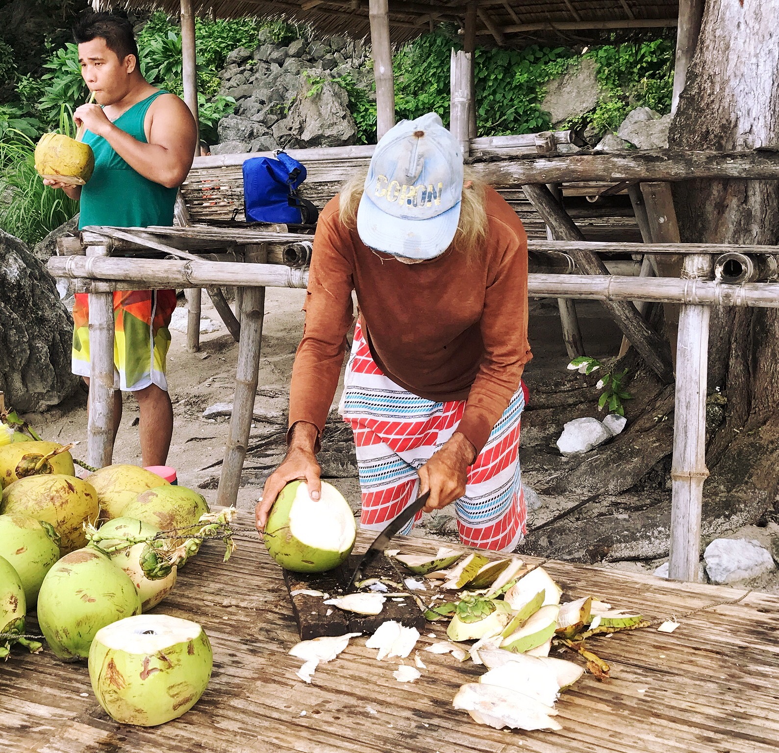 Our bungalow was right next to that of a German family, which was weird considering that all the rest of them seemed to be free. Nevertheless, they mostly kept to themselves and left the day before we did. There was only one other couple on the whole island, locals from Manila we guessed, but we rarely saw them. There were some 10 or 15 “inhabitants”, but they apparently all work there to some degree. Some you would see picking up seaweed from the beach at 6:30am, others would be lounging in a free hammock, others still repairing the hull of some clapped out old boat on the beach. Billiards was a common pastime when work was scarce.