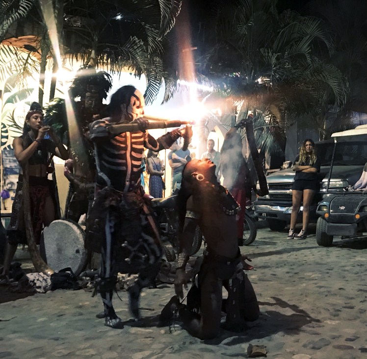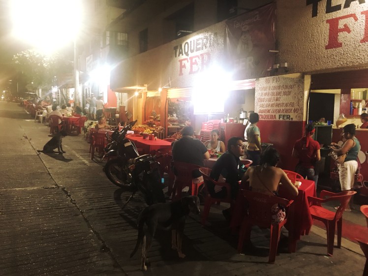 We found ourselves magnetized to either Pepe’s or several of the local places in the center of town, up from Zicatela, which also proved to be a good choice (and cheap). La Tropicana, a taco shop in town, is worth honorable mention with some fantastic tacos. Make sure to order them with the accoutrements of your choice though, otherwise they are served with just the meat (which is honestly still quite good). We made friends with a Canadian couple at Pepe’s one night, and ended up playing euchre with them on into the night. They were staying in La Punta, so we accompanied them back there and continued talking and drinking mezcal until our impressive bed time of 1:30am, which we hadn’t seen in wakefulness for quite some time. La Punta is also a sight to behold at night, with many of the tourists there pouring out into the streets, buying their beer from the corner market, while music blasts from several of the bars around.