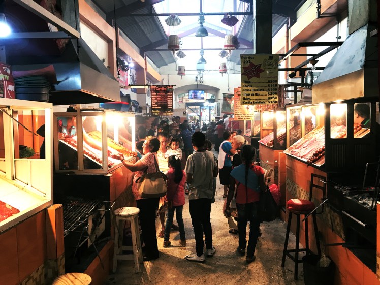 In the end, we spent much time wandering the cobblestone streets and visiting the many markets in town. We ate great food, relying heavily on the ubiquitous mole and tlayudas, and less so on tacos as we had before, as they’re much less of a focus in this town, it seems. We drank lots of mezcal and hot chocolate, as the town is known for those things as well. On the day before we left we visited the Central de Abastos market, a bit off the typical tourist trail, and were thoroughly rewarded. The place is absolutely massive, first of all, spanning several city blocks. We got a feeling that we were in the right place by the fact that among the hundreds of other people we saw there, only two others were tourists. Indeed, we were able to find some lovely handicrafts for a fraction of their prices at Mercado Benito Juarez, for example. Visiting the market is an experience in and of itself, however, and is sure to be fun even if you’re not looking to buy.