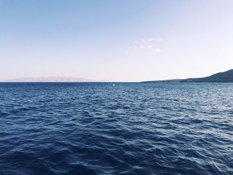 We again headed to shore and found ourselves at a beachside taverna to recharge some of our devices and fill up on water for washing. Several of us headed up the hill a short while later to collect some ice from the market in town. After dinner back on board the boat, we decided that we quite liked Kanala, and considering the relaxed time frame we were working with, we decided to spend the following day there as well. The following day was very laid back, and we spent our time variably hiking up in the hills around Kanala, relaxing on the boat, or running errands in town. As a few of us were taking care of some things around the boat, Oona noticed that the dinghy was no longer anywhere to be seen, and called our attention to that fact. We fixed our eyes towards the horizon in a panic and saw it drifting in the distance; apparently we hadn’t tied it up properly when we came back. The captain hurriedly threw on some fins and a mask and jumped in after it. It was a good several hundred meters from the boat at that point, but he was fortunately able to catch up to it before it hit the current in the blue and brought it back safe and sound.