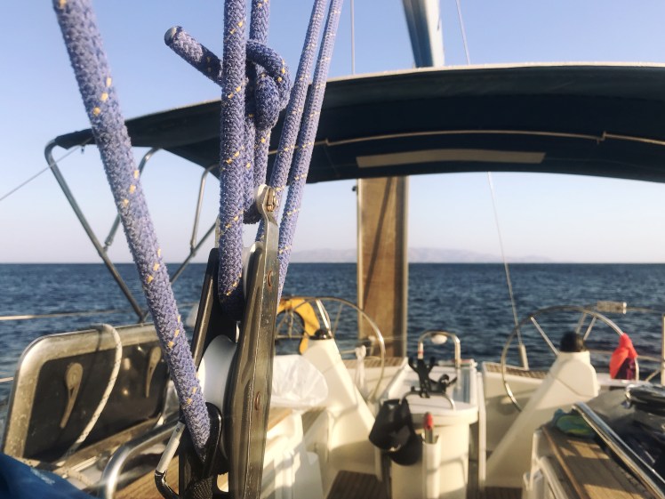 Our boat was a 45-foot Bavaria Yachts sloop, rented to the captains of our journey by an outfit in Greece that does such things. The captains we knew from our time on Utila; not only are they accomplished divers, but they are experienced yachtsmen too! In addition to piloting the vessel and teaching the rest of us on board how to sail, they handled a number of logistical tasks like composing a passenger manifest and handling several tomes of paperwork required for renting and sailing a boat in Greece. The rest of us ranged in sailing experience from essentially zero to having sailed a few times and knowing the basics, so the only two on board who could be trusted with the whole task were the captains.
