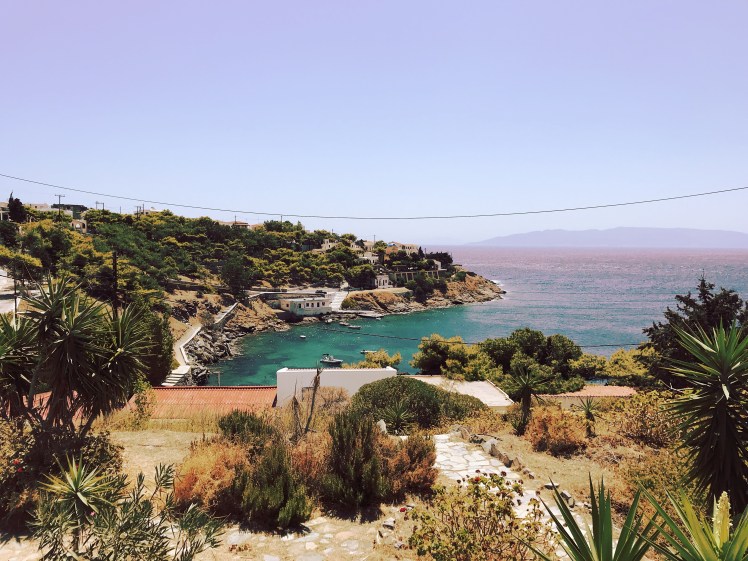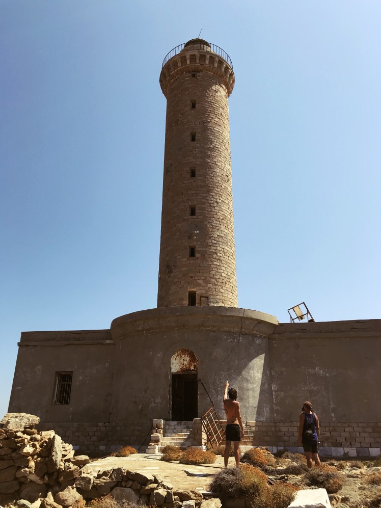 The next morning we concluded that this place was basically the best ever. We headed to shore to explore the island a bit, and made our way over to the lighthouse facing Ermoupoli, the main town on Siros across the channel. The lighthouse is abandoned, but wide open, so we climbed the steep spiral staircase all the way to the lookout on top, which afforded brilliant views of the waterways and islands all around us. With such a lovely spot all to ourselves we decided to spend another night here, and headed to Ermoupoli to get some food for a barbecue on the beach that night.