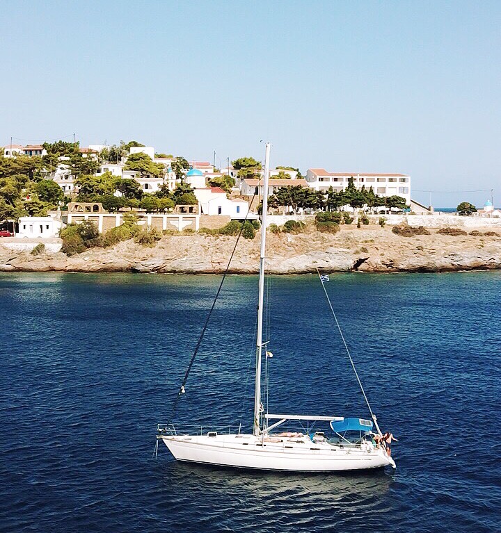 Our itinerary was quite flexible, and nothing had really been planned more than a day or so in advance. Our only solid requirement was being on Santorini two weeks later. So, the Cyclades were our oyster, and we were free to take whichever path we chose, winds permitting. Citing our relatively late departure that afternoon, we settled on a spot some 20 nautical miles down the coast from Athens, still on the Greek mainland. We dropped anchor in a secluded little bay among several other sailboats, had some dinner on the boat, talked about our plans for the following day, and went to bed relatively early.